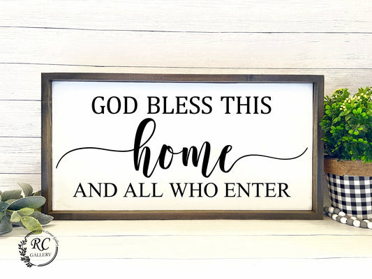 God bless this home and all who enter, living room wood sign.