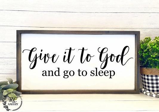 Give it to god and go to sleep bedroom sign.