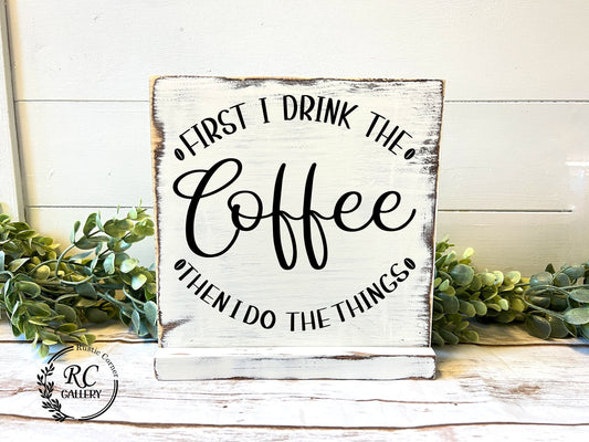 First I drink the coffee then I do the things wood sign, Coffee Corner Decor.