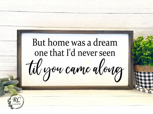 Home was a dream one that I'd never seen til you came along wood sign.